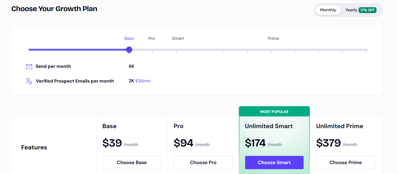 Each plan comes with unlimited email warmup, centralized inbox, and onboarding with the customer success manager (CSM), making it easier to get started quickly.