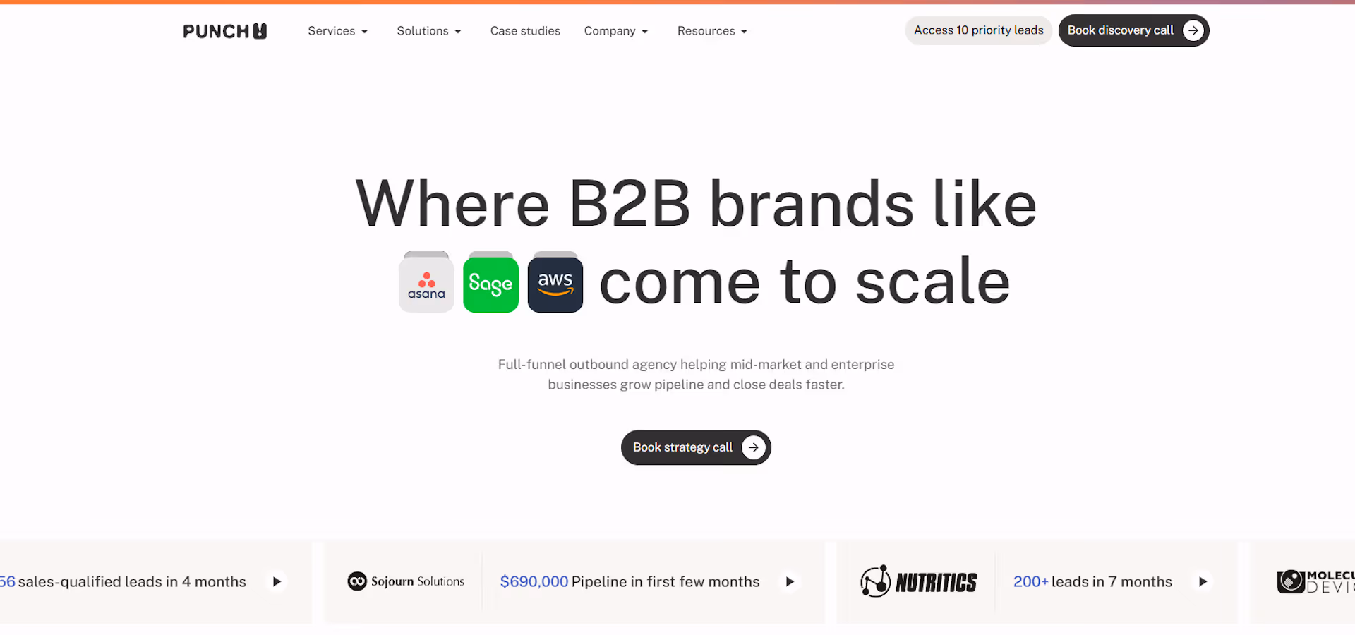 Punch! is a full-funnel B2B growth and outbound sales agency with offices and headquarters in London. They run SDR teams, ABM-style outreach, and multi-channel outbound prospecting (phone, email, LinkedIn and targeted gifts) to generate qualified meetings and shorten sales cycles for mid-market and enterprise clients. Their offering blends strategy consulting, sales development (SDR) execution and tightly tracked outbound sales metrics so your sales reps get high-quality leads and an immediate feedback loop to improve pipeline predictability.