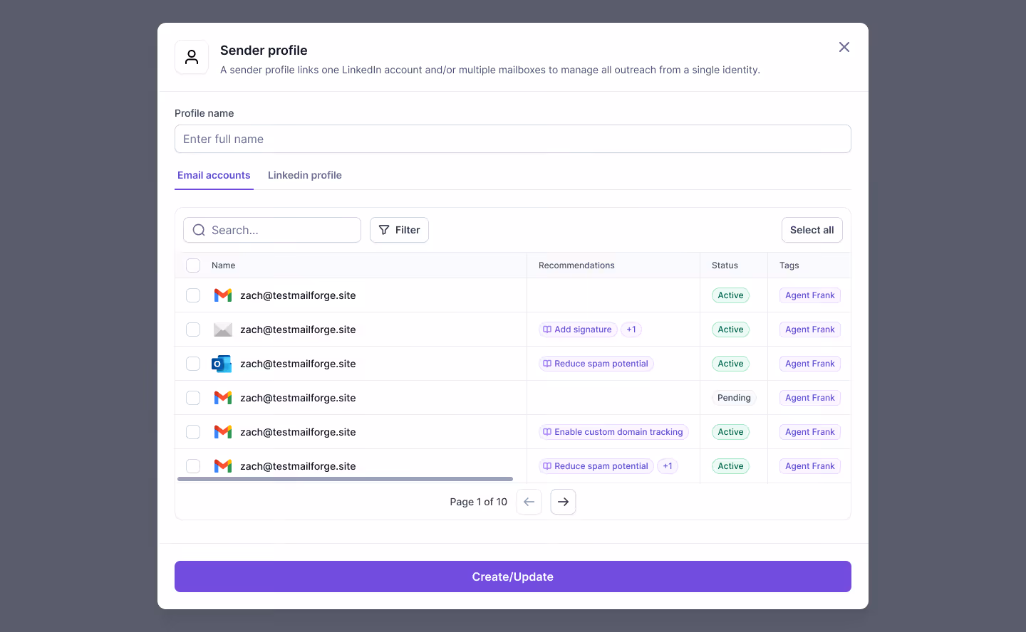 Pros: No seat limits, connect as many LinkedIn senders and mailboxes as you need. Alt-text: Adding Mailboxes and LinkedIn Accounts in Salesforge