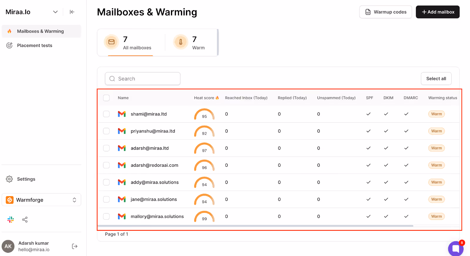 Built-in Warmforge provides free, unlimited email warm-up to protect sender reputation. Alt-text: Account Warm-up monitoring in Warmforge