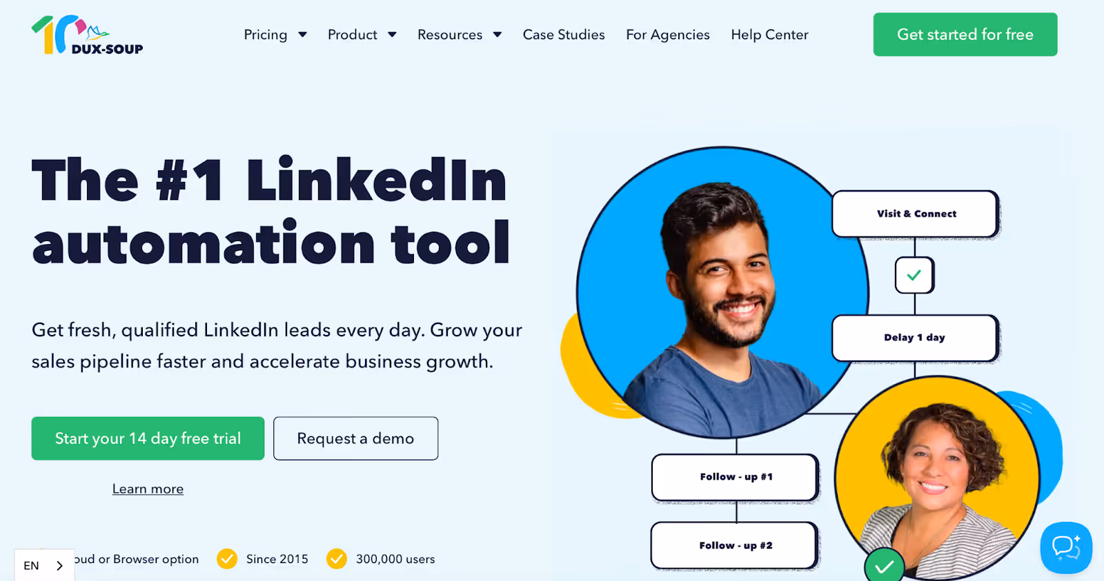 3) Dux-Soup: Best Skylead Alternative for Chrome-Based LinkedIn Automation at Scale Alt Text: Dux-Soup Homepage