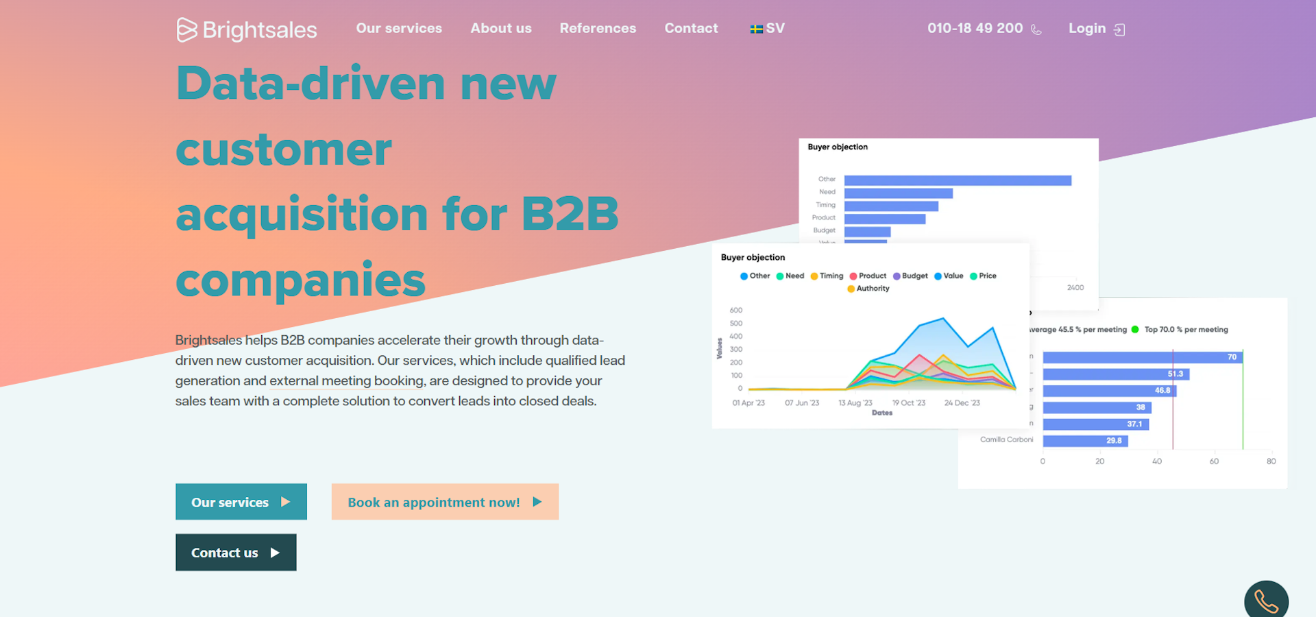 Brightvision brings together local SDRs, multichannel campaigns, and transparent reporting. Their approach is built around the Swedish market’s preference for relevance and credibility, and they are a strong choice when you need real-time insights, campaign optimization, and a team that can adapt outreach to different industries.