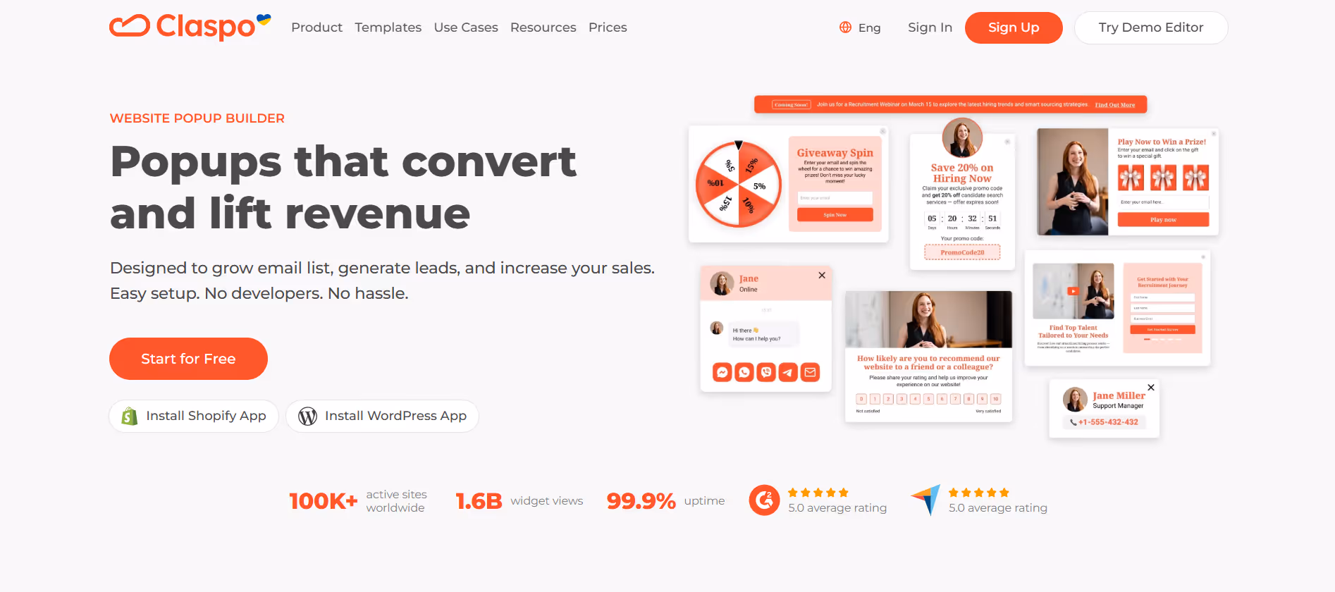 Claspo On-site conversion platform Yes No Limited Free for first 10K pageviews