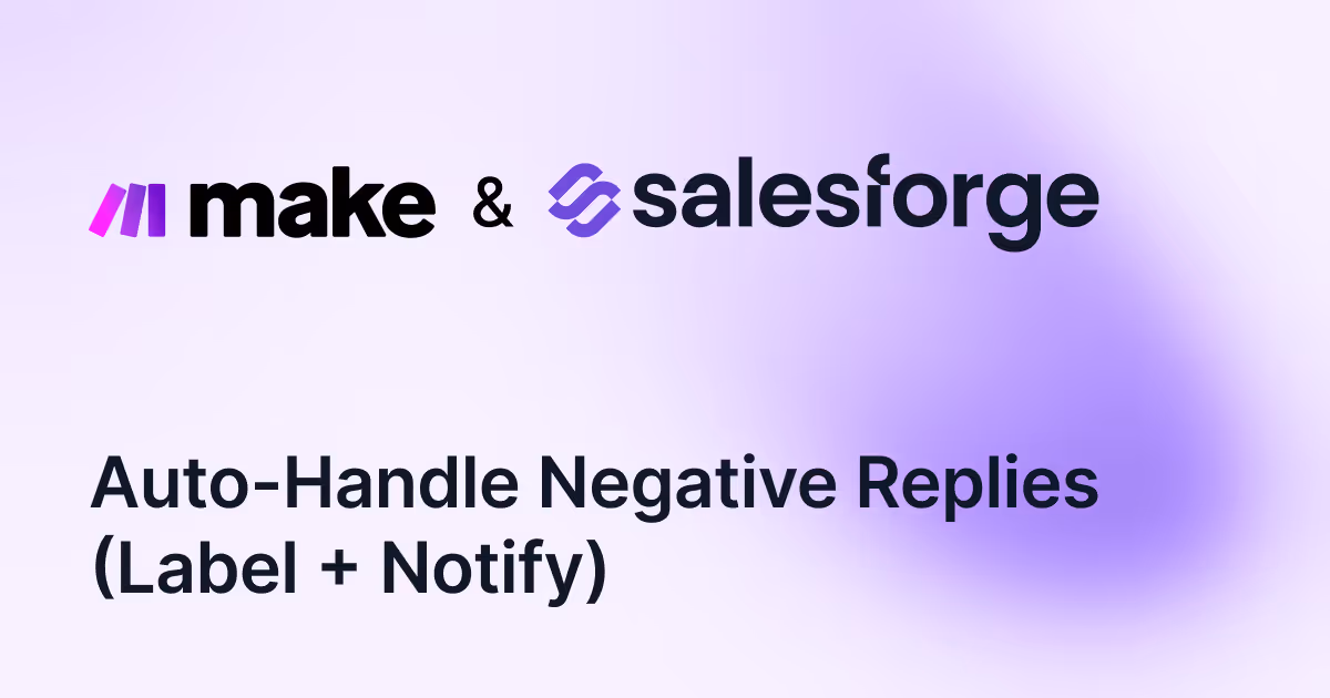 Reduce manual triage. This flow labels negative replies in Salesforge (e.g., “Not Interested”), removes the contact from the sequence if you choose, and posts a concise Slack summary. Outcome: cleaner metrics, less human error, and a respectful exit that protects future deliverability.