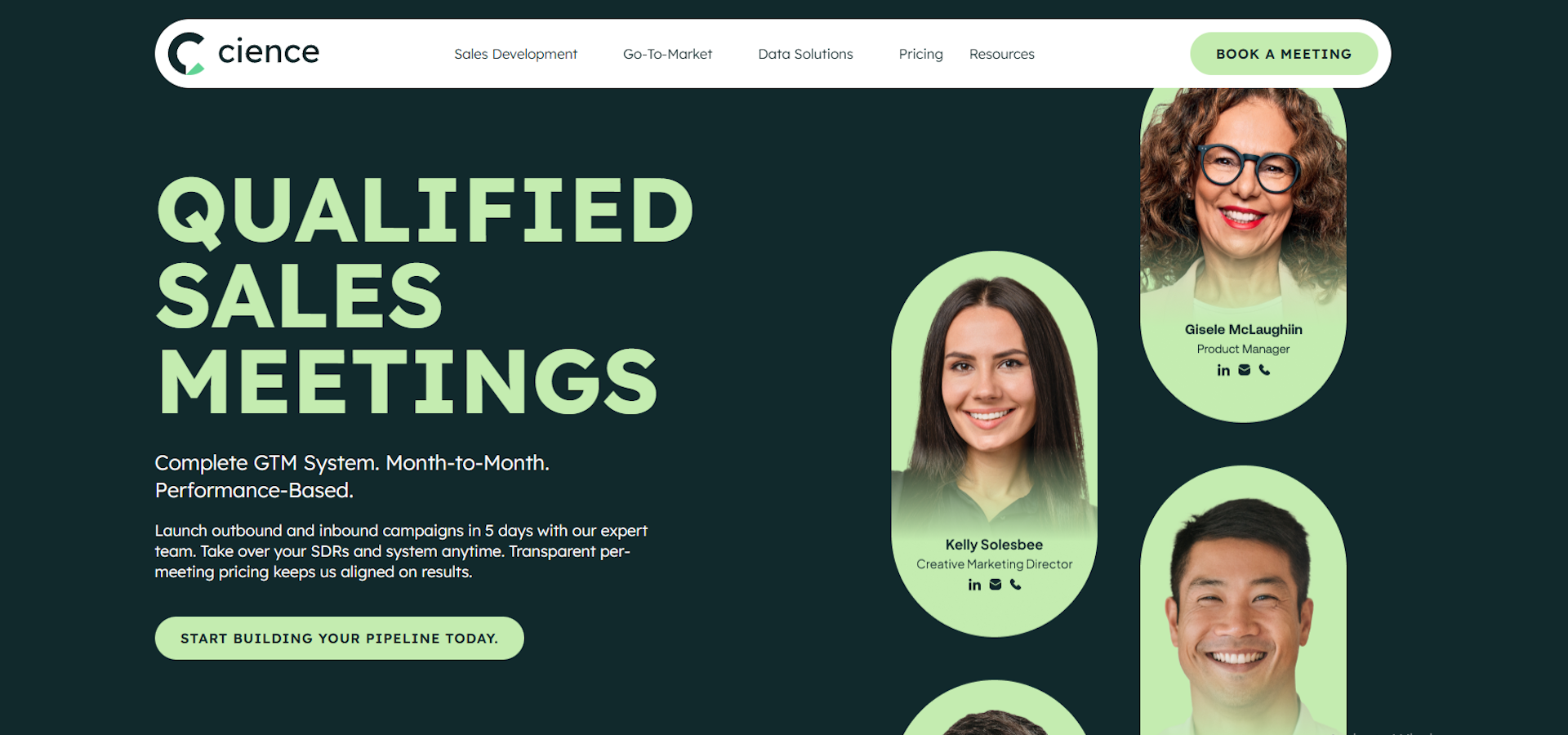 CIENCE combines human researchers, SDRs, and orchestration software. Their model enables large-scale outbound campaigns with structured execution and data-backed targeting. They build targeted lists, run multichannel campaigns (cold email, LinkedIn outreach, phone calls), and provide sales development specialists who book qualified meetings and create predictable pipeline for B2B sellers. CIENCE emphasizes data enrichment, market research and campaign management so your internal resources can focus on closing deals and revenue growth.