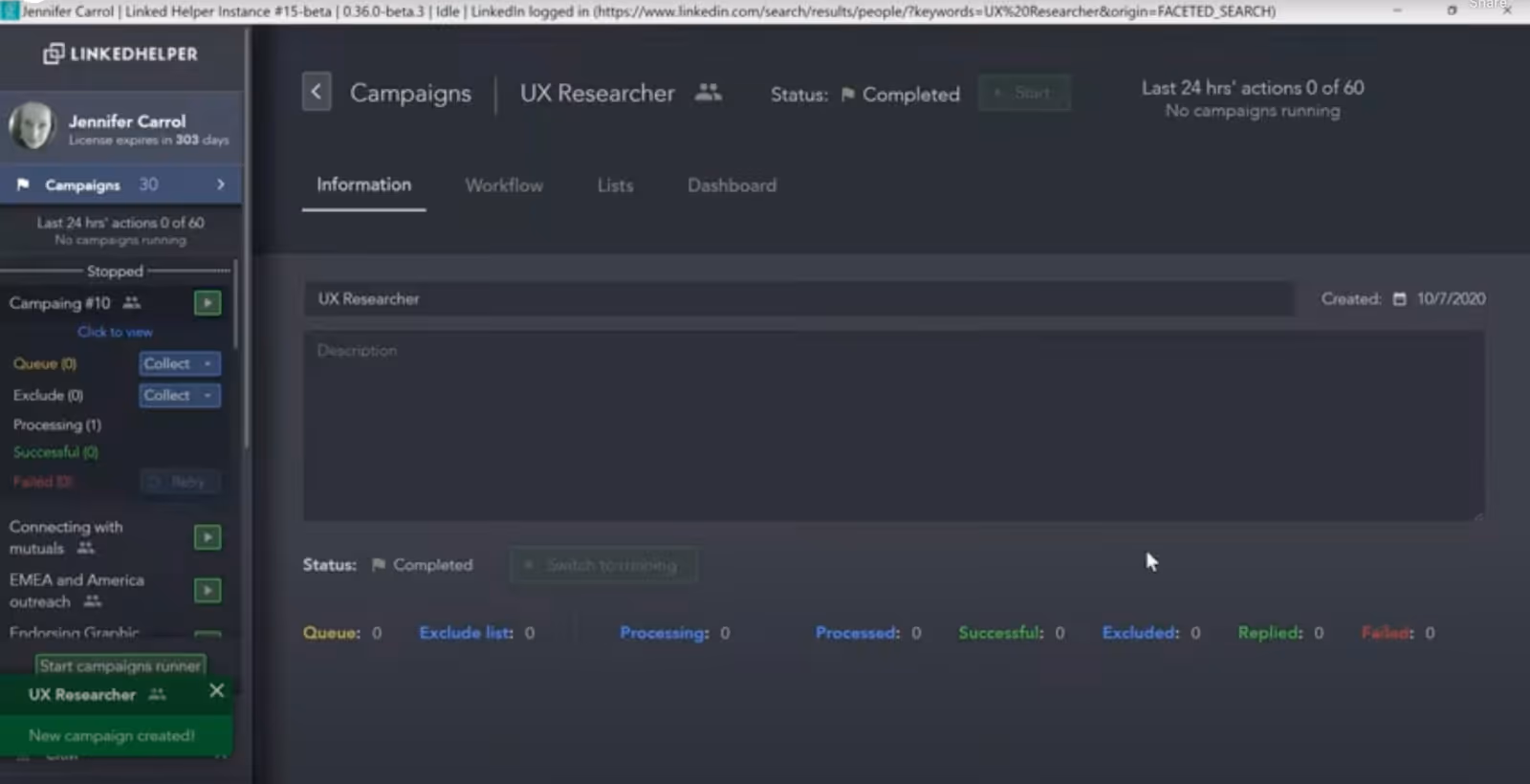 You can create and organize multiple outreach campaigns at the same time.