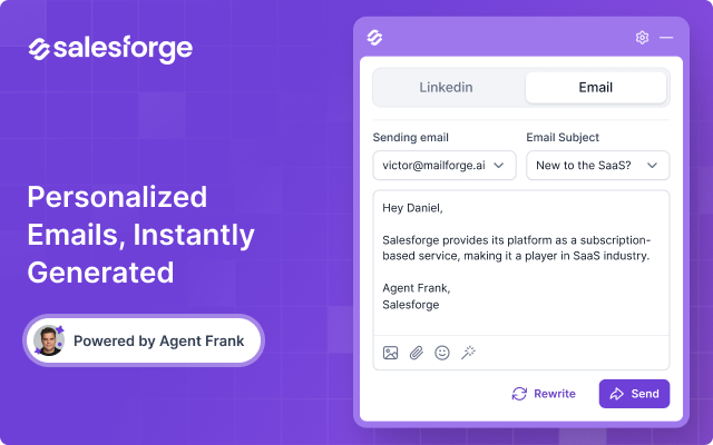 Install the free extension, or unlock the full Salesforge platform (AI SDR, multi-channel outreach, deliverability tools, lead search, and more) with a free account at: https://salesforge.ai