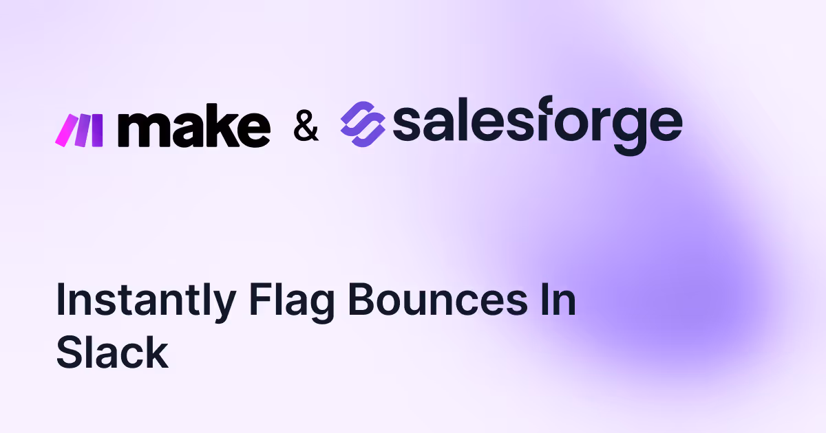 Keep deliverability issues from snowballing. This Make scenario watches for Salesforge bounce events and posts an immediate alert in Slack with the contact, sequence, and timestamp so ops can pause the step, fix the record, or update suppression lists on the spot. The feedback loop is instant, so you protect sender reputation and stop burning domains.